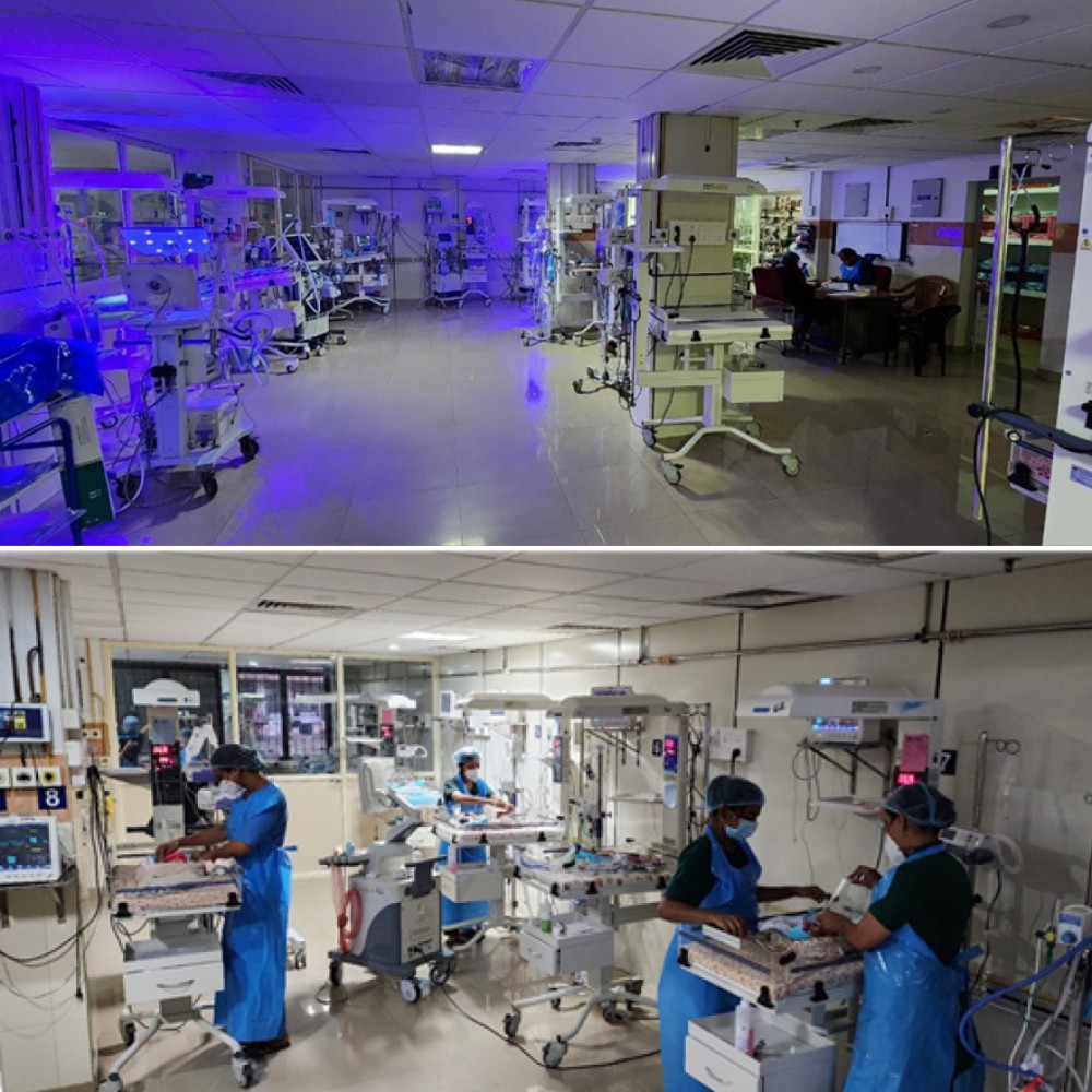 A new neonatal ICU in 3000 sq. feet area was developed in GMC, Thrissur with the financial assistance from National Health Mission (NHM) along with local funds, and started functioning from April 2019. Currently, our neonatology unit is a 42-bedded ICU, with advanced Level III care facilities such as conventional ventilation (13 ventilators), high frequency ventilation, therapeutic hypothermia care, point of care ultrasonography, extreme preterm care, total parenteral nutrition and complex neonatal surgical care.